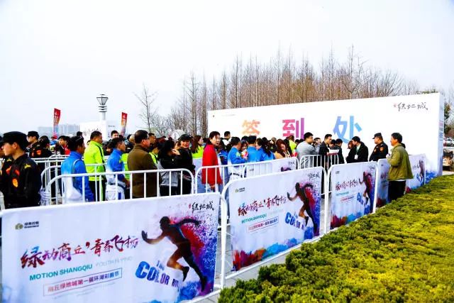 商丘日月湖畔的周末 瞬间变成了一片欢乐的海洋 “绿动商丘,青春飞扬”彩跑节 沿途彩旗飞扬、红包惊喜不断 一股健康、阳光、时尚、年轻 欢乐的人流 成为商丘一道亮丽的风景线 选手手持邀请函签到入场