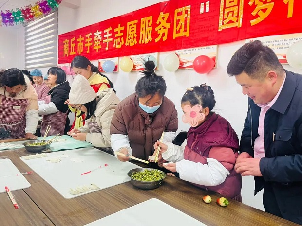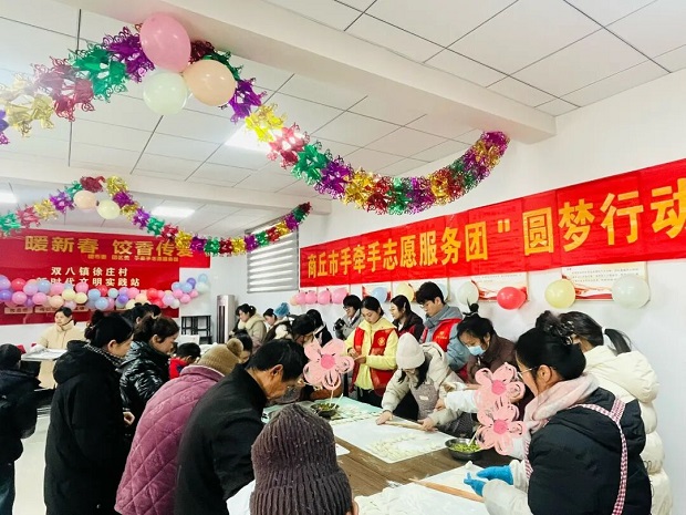新春将至,年味渐浓。为切实履行共青团服务青少年的初心使命,传递温暖与关怀,1月31日,共青团商丘市委、共青团梁园区委联合商丘市青年志愿者协会手牵手志愿服务团,走进双八镇开展“‘青’暖新春 饺香传爱”春节暖心陪伴活动。 活动现场,处处洋溢着喜迎新春的欢乐氛围。青年志愿者带领孩子们开展趣味破冰游戏,在轻松互动中快速拉近彼此距离,欢声笑语萦绕全场,让现场暖意持续升温。