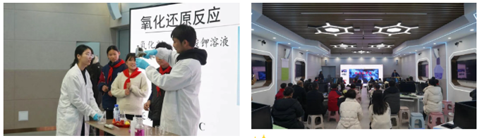 商丘师范学院化学化工学院——玩转趣味科学,感受生活之美 活动的最后一站,孩子们走进商丘师范学院化学化工学院科普课堂。这里的“科学导师”们早已做好准备,通过趣味实验、互动问答等形式,将抽象的化学原理转化为生动有趣的体验。 在实验环节,“科学导师”为孩子们展示了“大象牙膏”“彩虹喷泉”等奇妙的化学反应,绚丽的现象让孩子们惊叹不已。在互动问答环节,孩子们积极思考,踊跃回答问题,现场充满欢声笑语与探索热情。通过此次科普课堂,孩子们在动手实践中破除了“化学=危险”的认知误区,真切感受到科学与生活的紧密联系。
