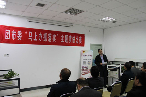 11月4日下午,由市委市直工委组织开展的“马上办抓落实”主题演讲比赛在团市委新媒体中心顺利举行。演讲比赛由团市委副书记李建领主持。 此次比赛引起了领导的高度重视,市直工委组织部部长杨东采,市直工委党建研究会秘书长孙建华亲临现场和团市委书记曾凯一起担任评委为选手打分。 比赛中,选手们演讲时镇定自若,落落大方,感情充沛、潇洒自如。选手们以生动的语言和感人的事例,展示了团市委工作成果和精神面貌。他们声情并茂的演讲赢得了评委和观众的阵阵掌声。整场演讲气氛热烈,精彩纷呈,演讲者们的所见所闻、所思所感引起了大家的共鸣。