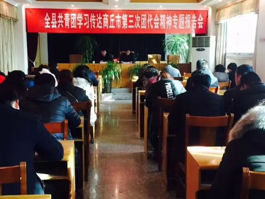 团夏邑县委召开学习传达商丘市第三次团代会精神专题报告会,迅速在全县各级团组织和团员青年中掀起学习贯彻市第三次团代会精神的热潮。 会议要求各级团组织:一要高度重视。迅速召开专题会议,全面学习传达会议精神。二要广泛宣传。充分利用本单位QQ群、微博、微信平台,让市三次团代会精神宣传到每个青年。三要贯彻落实。紧密联系自身实际,理清工作思路,将团代会精神落实到今后的工作中。