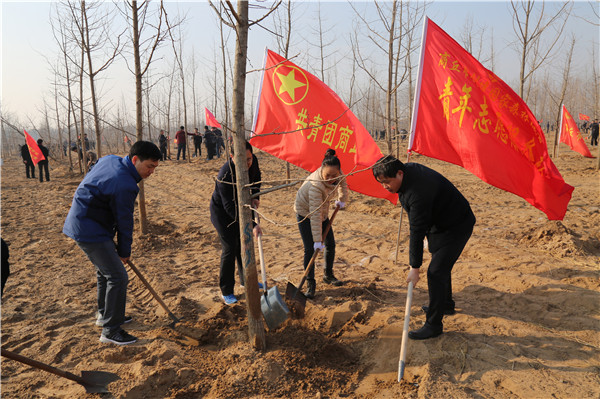 春暖花开,万物复苏。2月15日上午,团市委积极响应市委号召,组织机关全体同志到黄河故道国家森林公园参加义务植树活动。植树现场,一派忙碌景象。团市委机关同志一起挖树坑、栽树苗;挥锹铲土、扶直树苗、培土踩实,精心栽下每颗小树,每道工序都做得一丝不苟、仔细认真。经过一番热火朝天的劳动,栽种了13棵银杏树苗。连片的树苗错落有致,迎风挺立,把森林公园装点得更加生机盎然,为建设生态商丘、美丽商丘又添新绿。