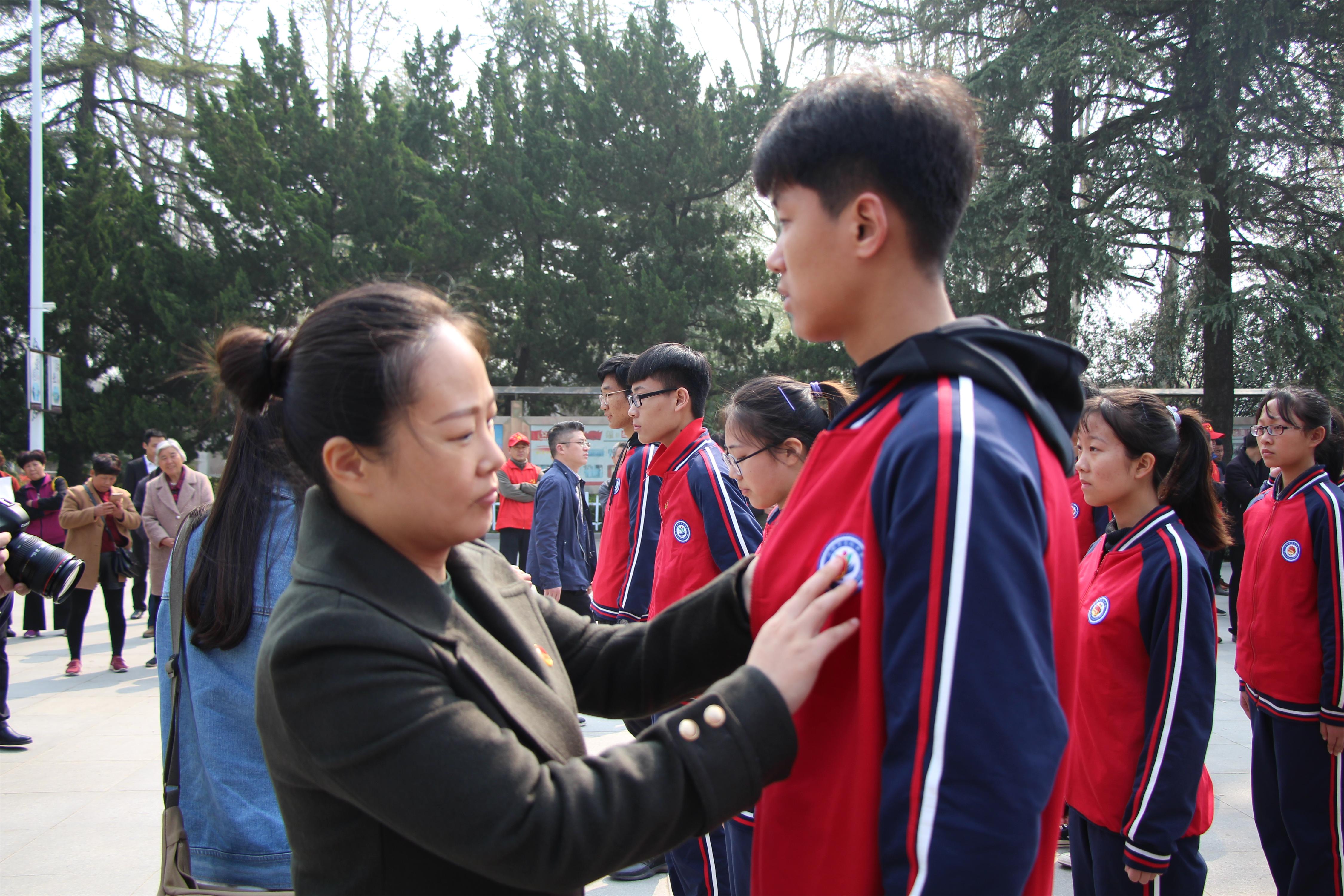 ![]() 团市委副书记黄丹丹为新团员佩戴团徽