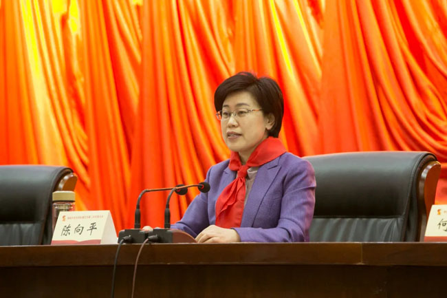 市委副书记陈向平代表市委向全市广大少年儿童致以亲切问候,充分肯定了市第一次少代会以来,我市少先队工作取得的成绩,并对全市少年儿童健康成长和少先队事业发展提出希望。陈向平指出,全市各级少先队组织和少先队工作者要坚持用正确的思想启迪少先队员,用科学的知识充实少先队员,用生动的实践锻炼少先队员,用先进的典型激励少先队员,为促进少年儿童的健康成长作出新的贡献。少先队员要志存高远,做信念坚定的时代新人;勤学笃行,做才识卓越的时代新人;修德励志,做品行高尚的时代新人;强健体魄,做全面发展的时代新人,为决胜全面建成小康社会、开启新时代商丘全面建设社会主义现代化新征程时刻准备着。 陈向平强调,全市各级少先队组织要不断提高团结、教育、引导、服务少年儿童的能力和水平,让党放心、让少年儿童满意;各级共青团组织要履行好全团带队职责,带领支持少先队创造性开展工作;少先队辅导员和少年儿童工作者要充满爱心、甘于奉献,为星星火炬事业作出新的贡献;各级党委和政府要关心爱护少年儿童,重视支持少先队工作,为少年儿童创造更加安全健康的成长环境;各级教育部门和中小学校要加强学校少工委建设,支持少先队辅导员队伍建设,为少先队发挥作用创造良好条件;学校、家庭和社会要密切协作,共同营造关心、爱护、帮助少年儿童的浓厚氛围。