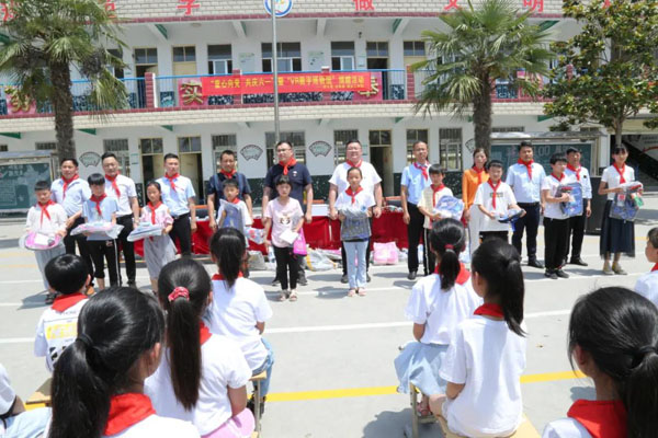 活动现场,同志们为武刘小学的学生们捐赠了防暑水杯、书包及文具套装(水彩笔、铅笔、套尺、作业本)跳绳等学习文体用品,并勉励同学们在无忧无虑的环境中努力学习,快乐成长,鼓励他们自觉传承红色基因,从小树立远大理想和报国之志。随后,青年志愿者和青联委员分别为孩子们上了“防溺水教育”专题课和“国旗国歌的故事”微党课,在教育和引导孩子们从小养成自我防范意识和自我保护意识的同时,又深入浅出、潜移默化引导孩子们铭记党的历史,自觉传承红色基因,立志成长成才。