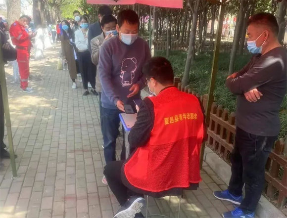 夏邑县 夏邑县团委组织青年志愿者协助开展全民核酸检测。